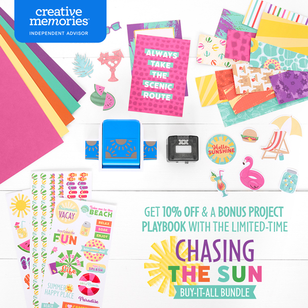 Please visit my CM site any time after 12pm CST on Thursday, April 2 to get your hands on the all new summer collection: Chasing the Sun, with the Sunlit Border Punch and Diamond Lattice Chain BMC. The Buy It All Bundle (receive all of the components along with saving 10%) is available, too. Check out the Album Kit Expansion Packs, Simple Page Kit Bundle 2 (or the April Simple Page Kit) as well as the Inks & Brushes Organizer Insert, 5x5 Stencils and the Weekender Bag!