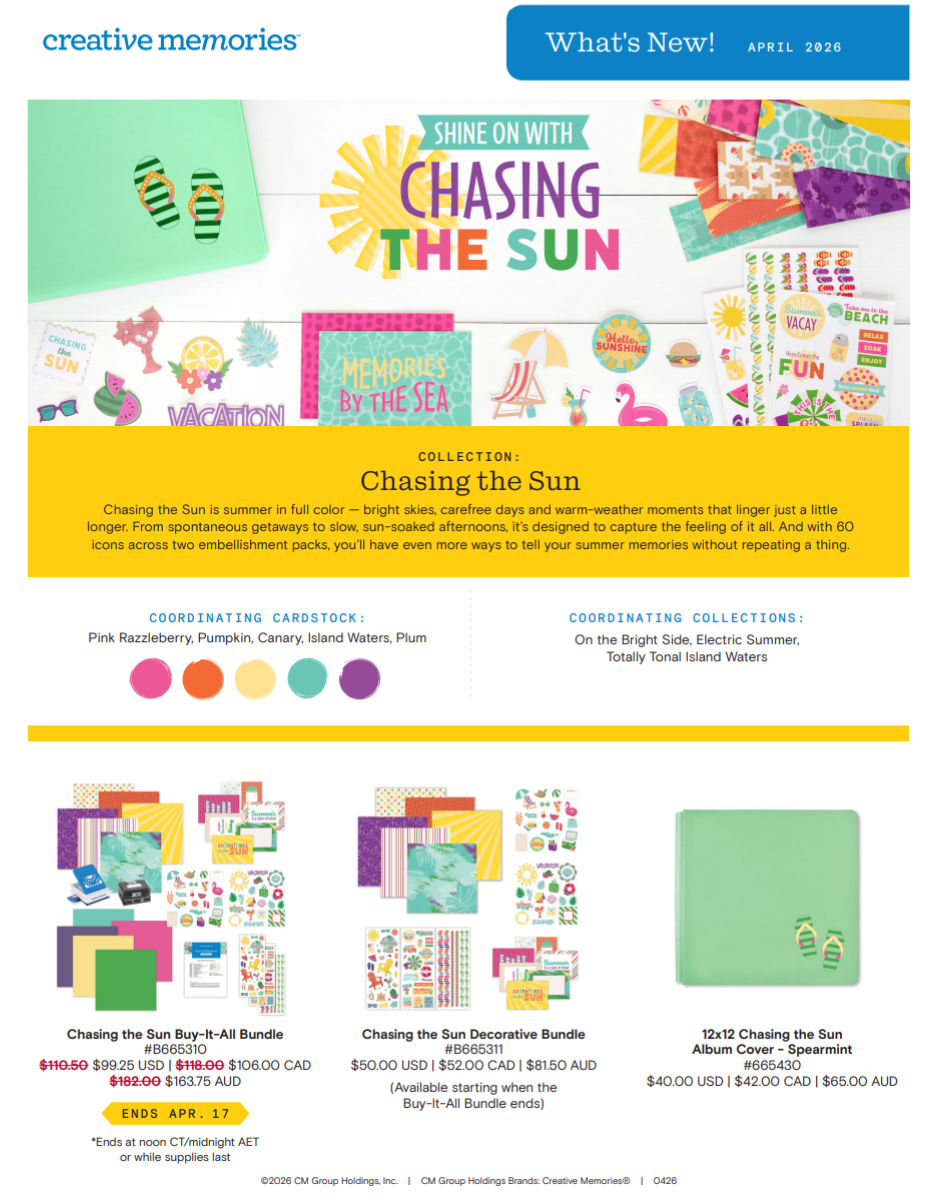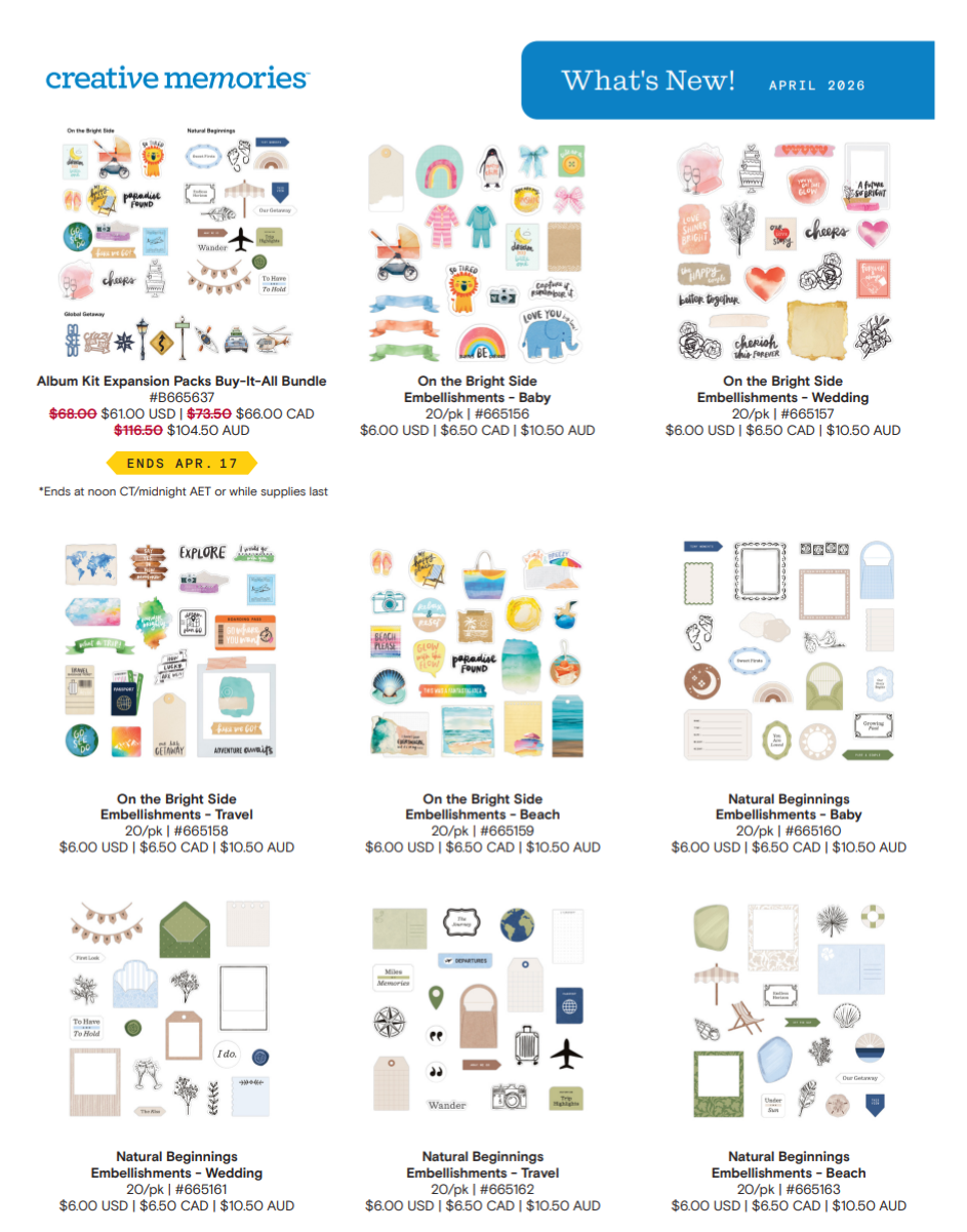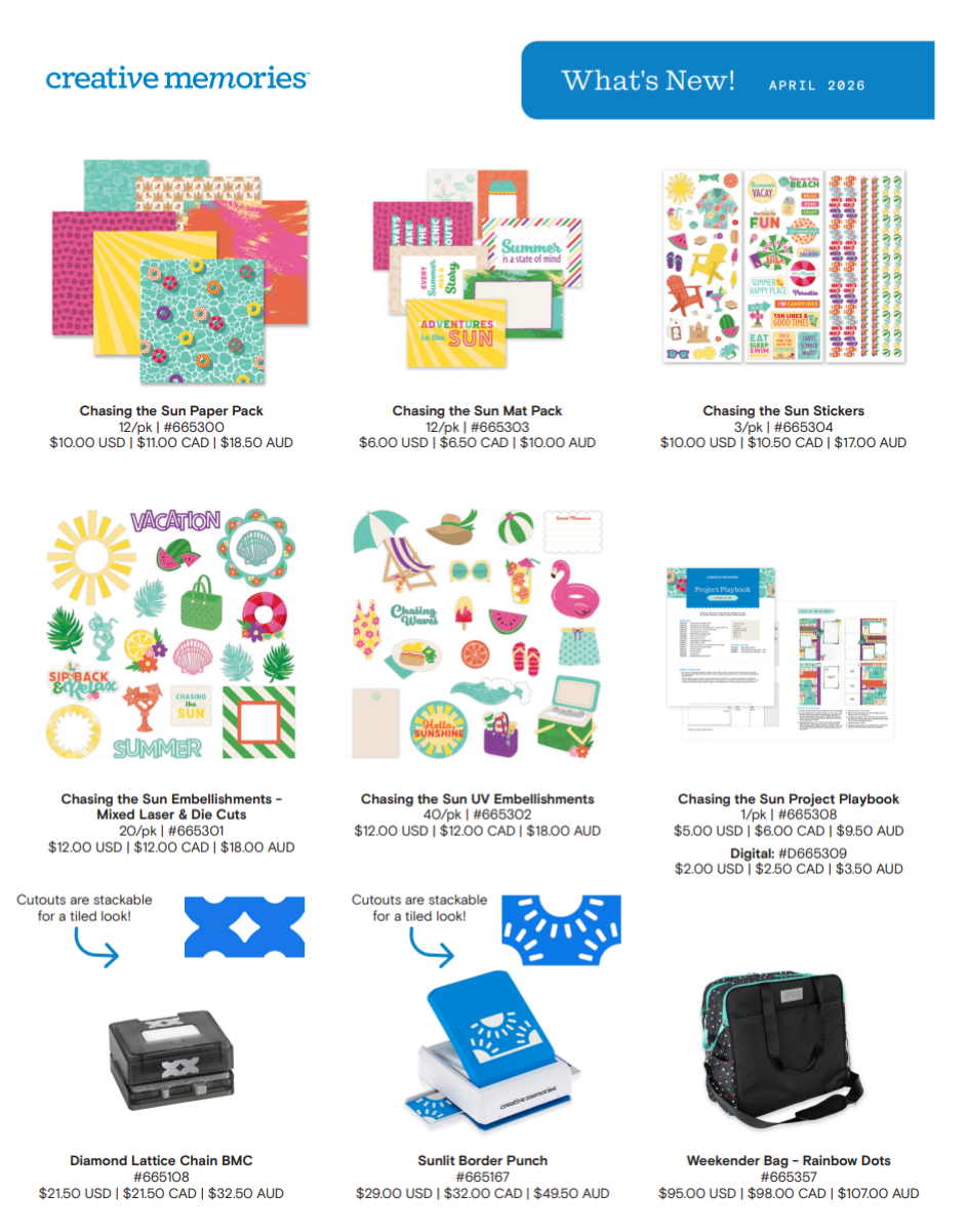 Again, all the details for everything in this post can be found on the Creative Memories Launch Page. At the end of this post, you will find the CM What's New Flyer for this launch, complete with pricing and other tidbits!