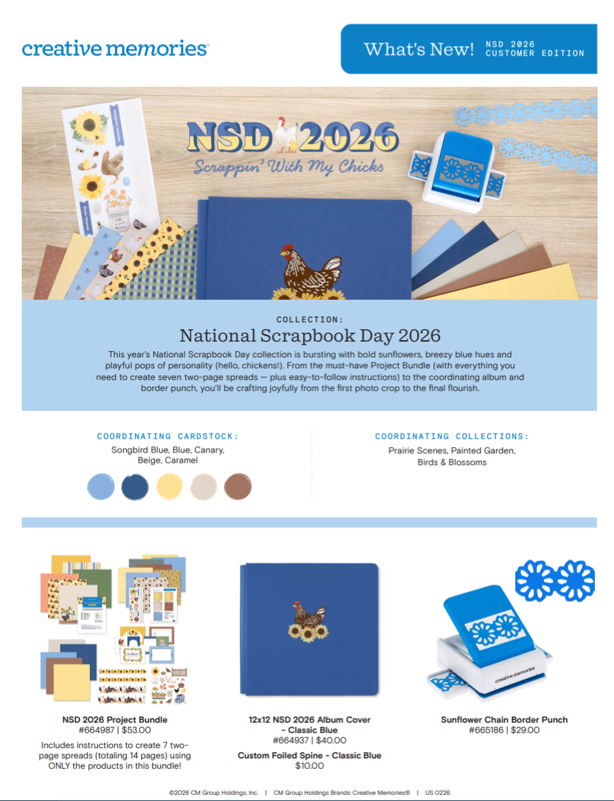 More details will be coming (along with a date & registration form for our in-person event). At the end of this post, you will find the CM What's New Flyer for National Scrapbook Day, complete with pricing and other tidbits!