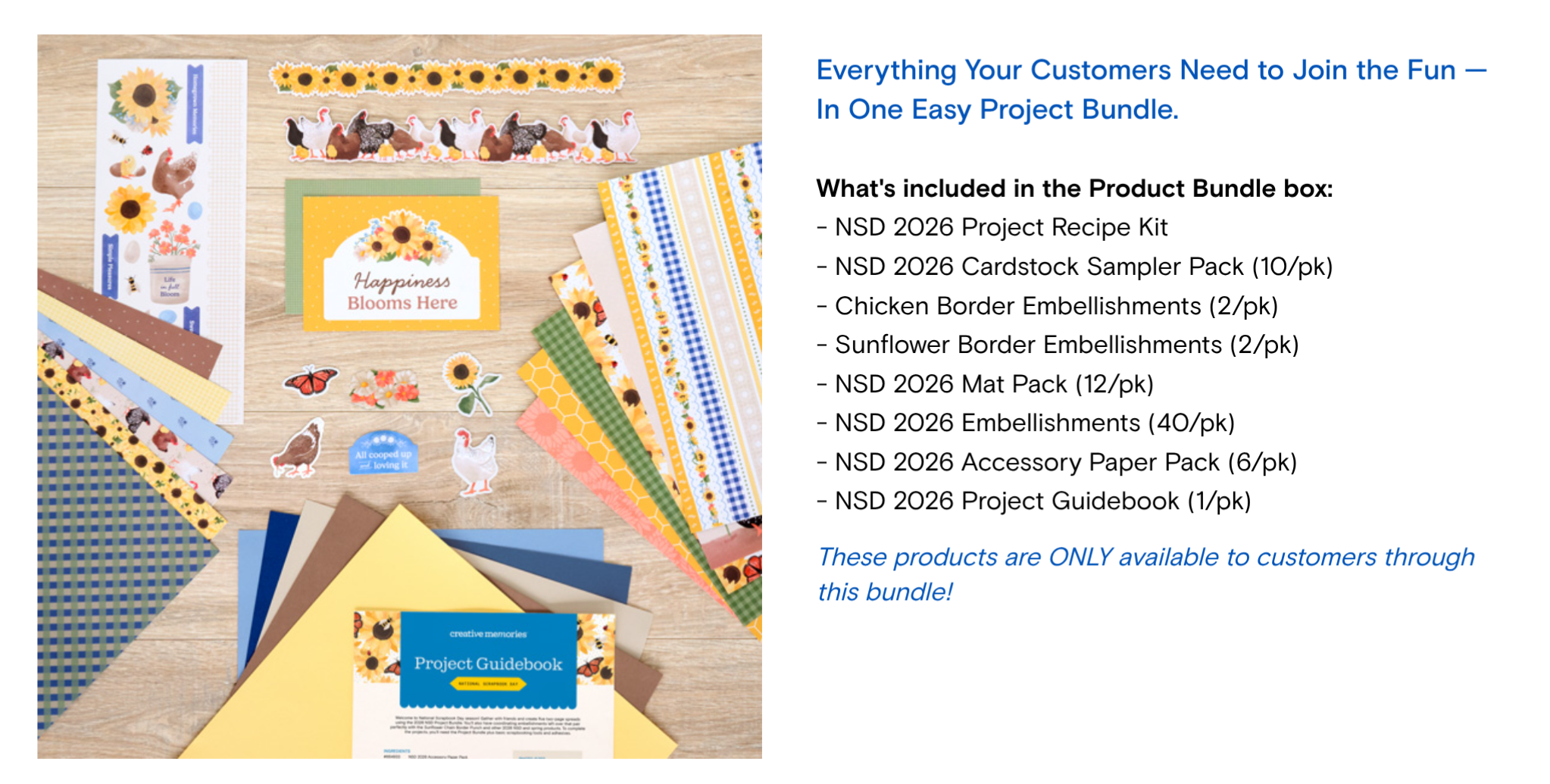 The Customer Bundle includes everything you need to create the National Scrapbook Day Project Recipe AND Project Guidebook!
